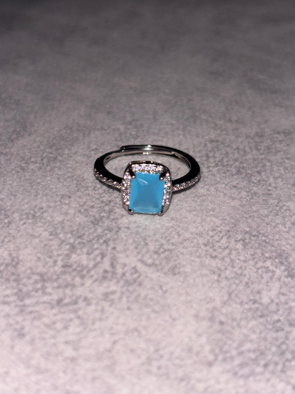 Silver Blue Stone Studded Friendship Copper Adjustable Ring