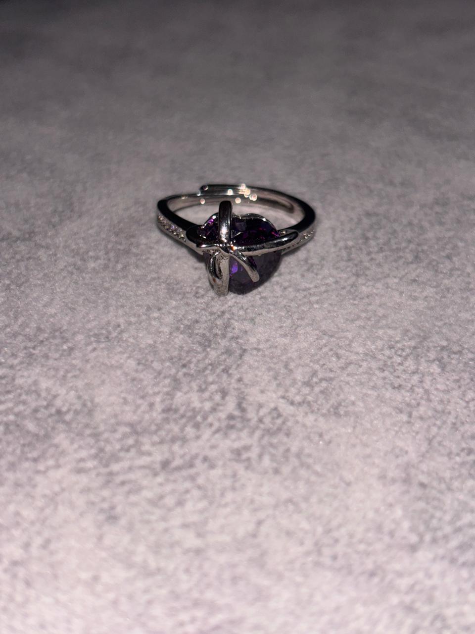 Silver Purple Bow Heart Copper Adjustable Ring